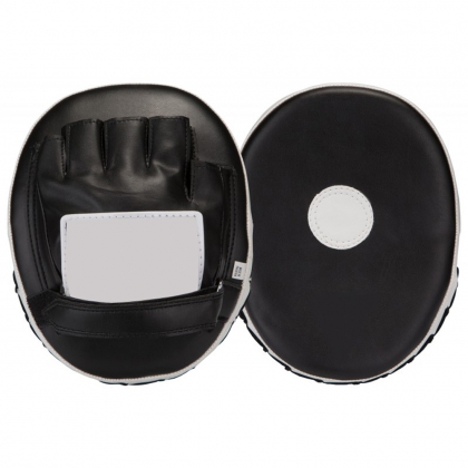 High quality curved training pad made of genuine leather. Light weight durable solid as a pair. Machine mould padding with ball grip palm. Buckle strap with velcro closure. Interior has breathable linning with extra padding to support wrist. Height: 28 cm, Length: 21 cm, Width: 5 cm. Also available in split and synthetic leather