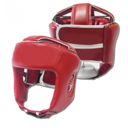 Genuine cowhide leather outside for durability with soft PU inside for comfort. Hard EVA padding outside with soft foam padding inside. Chin features the same with EVA padding around ears. Leather strap on top, enclosed with velcro closure on the back. Also available in buffalo leather. Size: S, M, L, X
